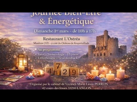 ☀️ C’est demain ! Journée Bien-Être ✨ 📍 L’Ostrea — Mazères 🕙 10h – 17h 🎟 Entrée 1€ reversé aux animaux 🐾 Hypnose 🌀 Neurofeedback 🧠 Lithothérapie 💎 Numérologie 🔢 Guidance 🔮 Viens découvrir, ressentir, profiter… et prendre du bon temps au soleil 🌿☀️ #JourneeBienEtre #Mazeres #Langon #Gironde #Roquetaillade #BienEtre #DeveloppementPersonnel #Hypnose #Lithotherapie #Numerologie #Guidance #SortirEnGironde #EvenementLocal #SudGironde